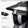 The helmet features a large, clear face shield that provides a wide field of vision while protecting against wind, dust, debris, and UV rays. -